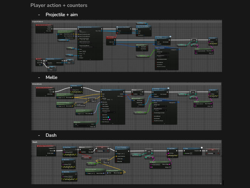 To create the illusion of smart enemy behavior, I designed a simple prototype for the system that tracks the player's actions during combat and applies specific changes to the next boss encounter.I also focused on establishing the core mechanics: 3Cs, player close-/long-ranged attacks, and a simple enemy AI for the first encounter.